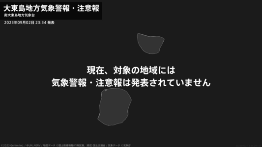 【大東島地方 気象警報・注意報 2023年09月02日 23:34】注意報を解除します。#気象警報注意報 #大東島地方