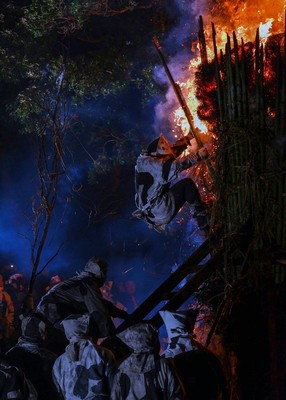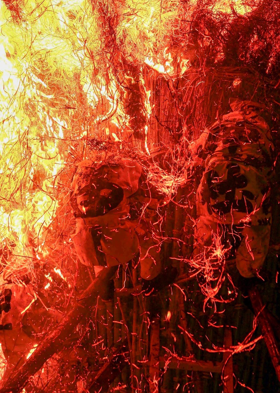 #鳥羽の火祭り 竹と茅で作った高さ5mのすずみ二基に火がつけられ、神男と、かぶる頭巾の形からネコがすずみの中に飛び込んで神木と十二縄を競って取り出す。その勝敗により、その年の天候と豊凶や作物の出来具合を占う神事である。 #火祭り #儀礼文化撮影研究会 #fujifilm_xseries #天下の奇祭 #火祭り #儀礼文化撮影研究会 #東京カメラ部 #fujifilm_xseries