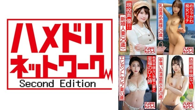 ハメドリネットワーク人妻MAX#18【1.出会い系で男を喰い漁る現役声優新婚人妻ちゃん25歳】【2.乳首責め連続寸止めめちゃかわ痴女ビッチ若妻ちゃん26歳】【3.ねっとりじっくり絡み合うエレガントセレブ妻33歳】【4.寝取られ願望の幸薄い系清楚奥さま28歳】