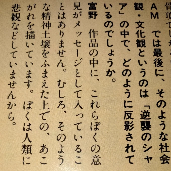 では最後に、そのような社会観・文化観というのは「逆襲のシャア」の中で、どのように反影されているのでしょうか。