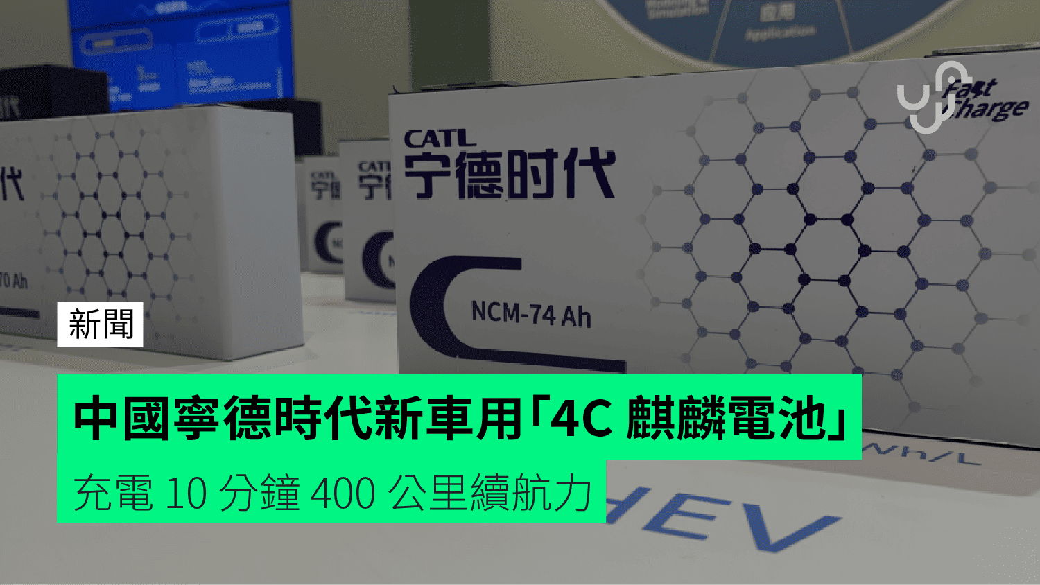 The post 中國寧德時代新車用「4C 麒麟電池」 充電 10 分鐘 400 公里續航力 appeared first on 香港 unwire.hk 玩生活.樂科技.