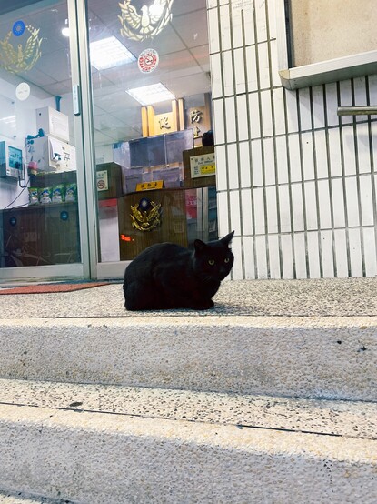 #小米遇到貓 很喜歡窩在派出所門口的黑貓,我要去拍他都覺得小尷尬(?)