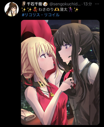 #百合 #LycorisRecoil #井之上泷奈 #锦木千束 #蒲烧太郎 #山葵典子 #泷千 #推特