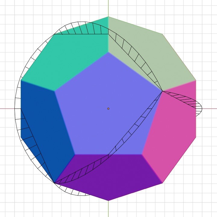 正 12‐面体は三面づつ合わせると正四面体の各面に相当するけど、右回りか左回りに傾けて捉える感じになり、境界が辺をなぞらないという事を認識しました。 #幾何学