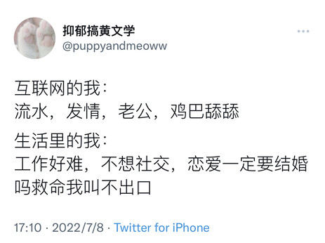 总之是当面会更可爱的那种 聊天只觉得什么情绪都只会得到一样的反馈 过于包容了