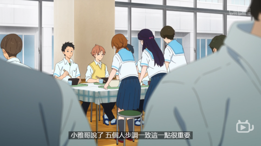 这里的镜头语言很可爱,女子组放下餐盘以及坐下的步调是一致的,但是吃的东西不一样,应该就是暗示解决的办法www