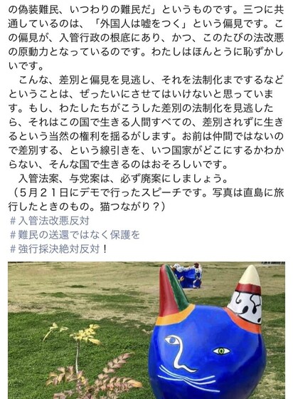 「三つに共通しているのは、「外国人は嘘をつく」という偏見です。この偏見が、入管行政の根底にあり、かつ、このたびの法改悪の原動力となっているのです。」