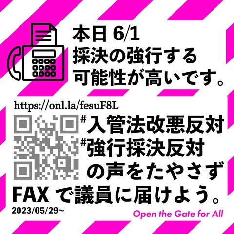 Open the Gate for All : #入管法改悪反対 #強行採決反対 の声をたやさずFAXで議員に届けよう。 https://www.openthegateforall.org/2023/05/2305fax.html