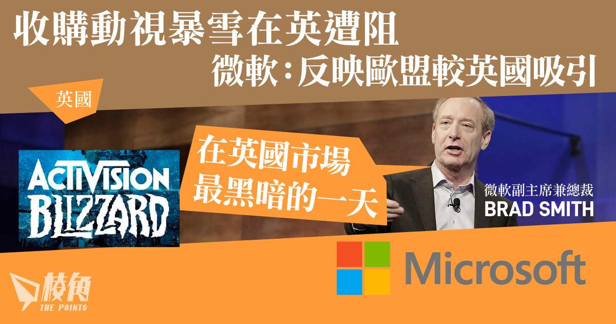 The post 收購動視暴雪在英遭阻 微軟:反映歐盟較英國吸引 appeared first on 棱角媒體.