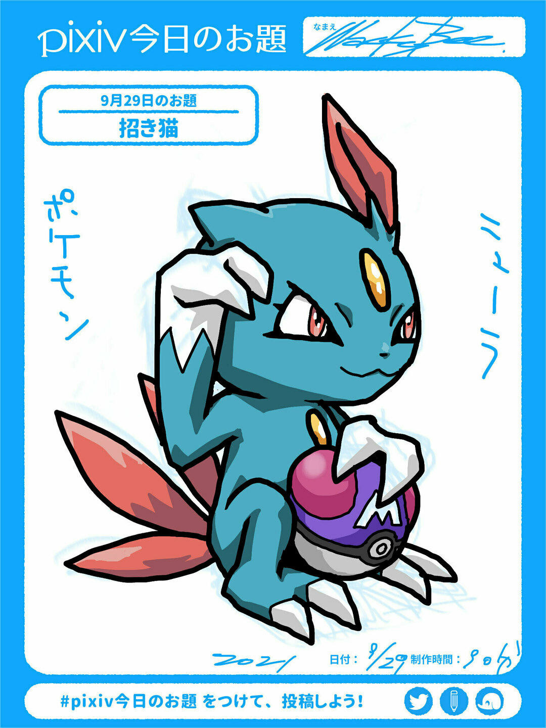 #Sketchドロー #白猫 #pixiv今日のお題 #sensei #招き猫 #青髪