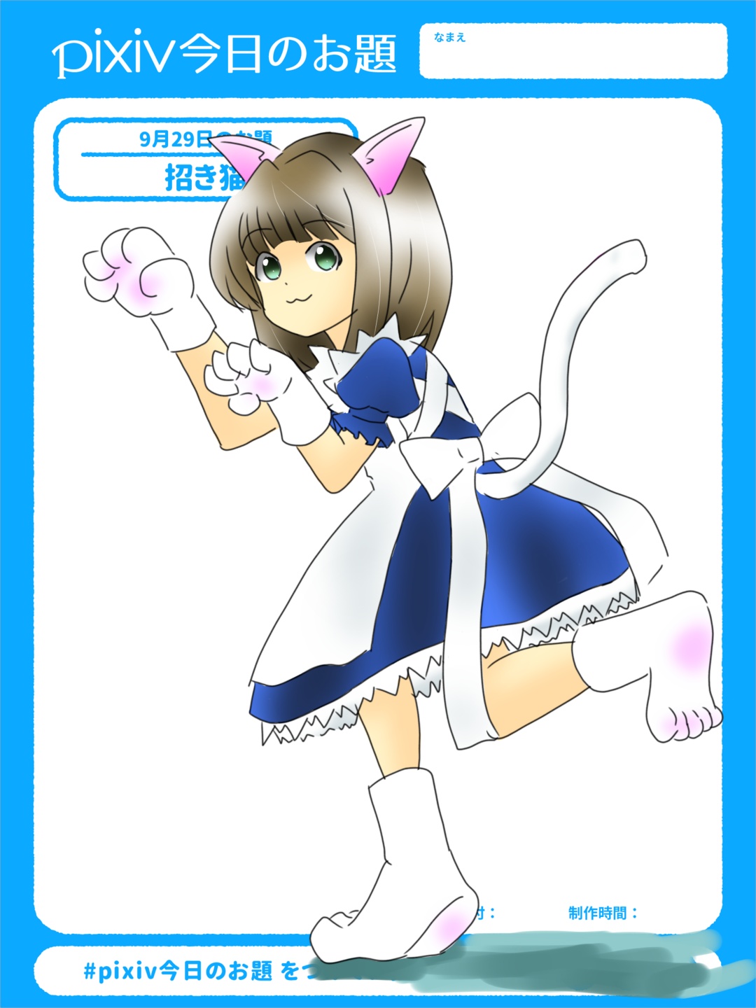#Sketchドロー #招き猫 #pixiv今日のお題 #sensei #pixivSketch #猫耳 #メイド #メイドさん #しっぽ #手袋
