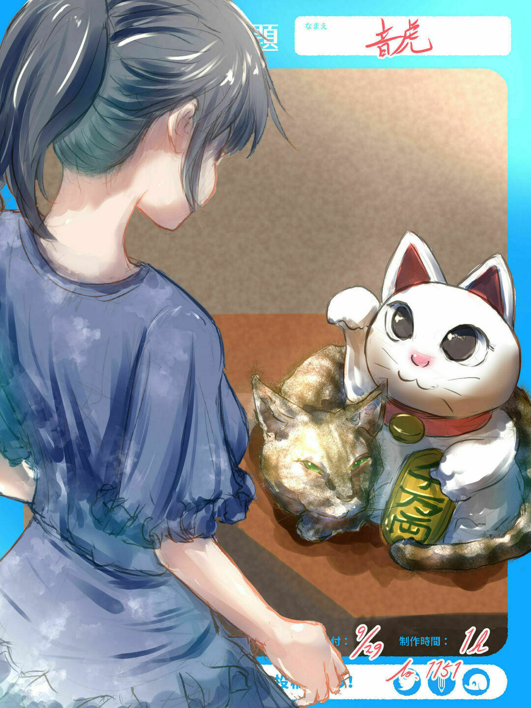 #pixivsketch #青髪 #招き猫 #sensei #pixiv今日のお題 #白猫 #sketchドロー