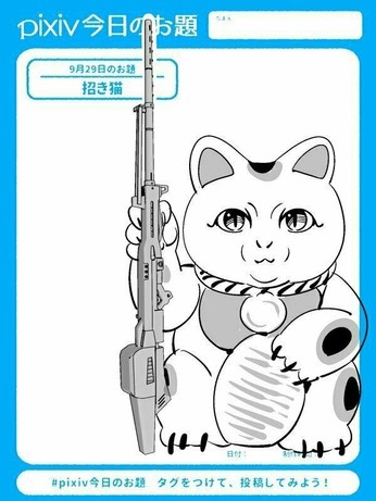 だけど描き終わってから、招き猫って三毛猫だったよなーと気がついたものの、色付きの招き猫とか居るからアリでしょう。 #pixivSketch https://sketch.pixiv.net/items/6448157120039900990 https://pawoo.net/media/X91y6sbzFSmE1O79rfg