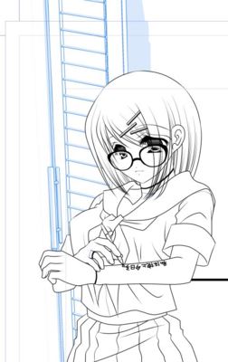 今日子さん(寝起き)にペン入れ。切断線はこれからです(*´Д`)