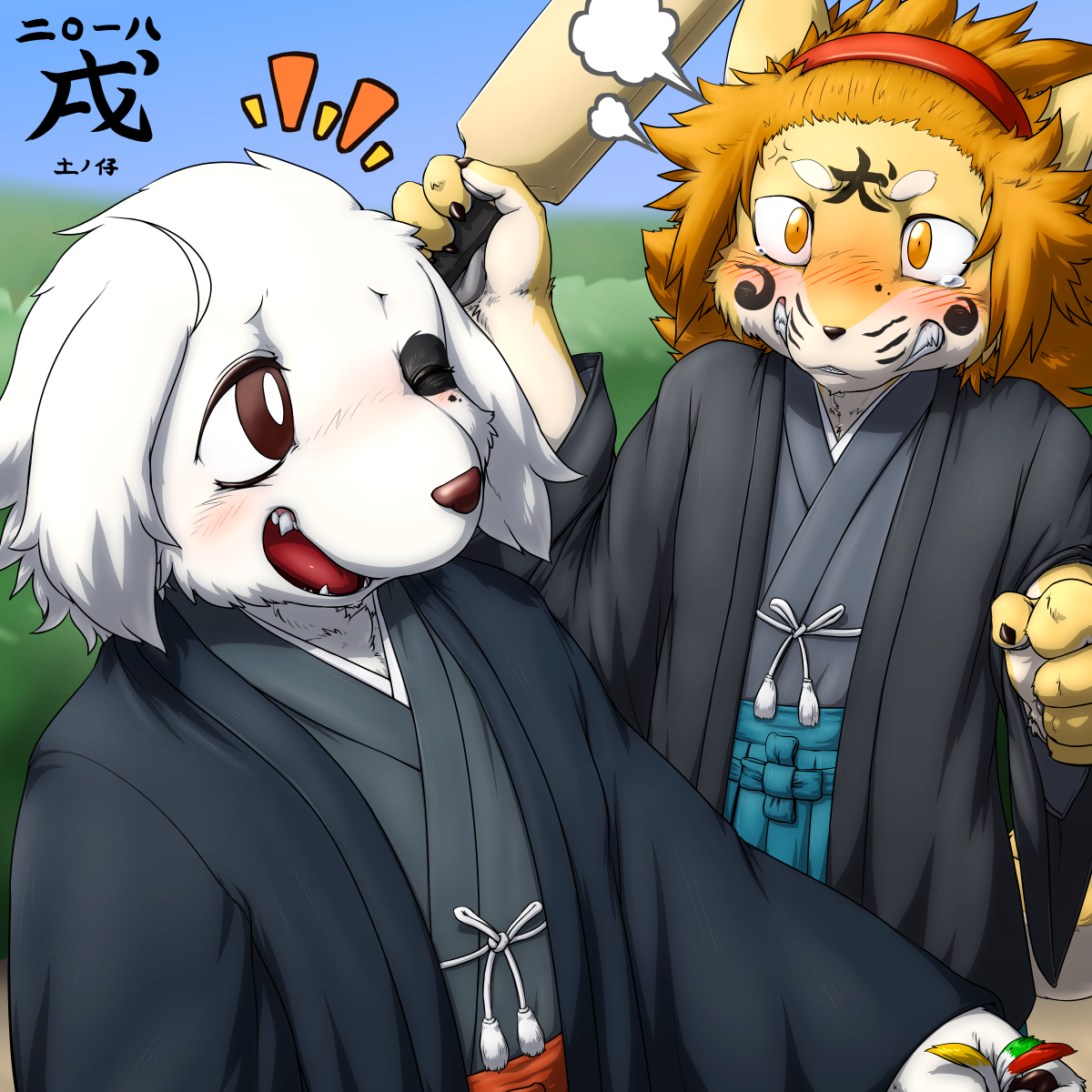 冬樹と豆次郎(園見喝さんより拝借)その10 https://pawoo.net/media/j1a7VxtCh6ViJDd37EI #ケモノ #ケモショタ #描き初め