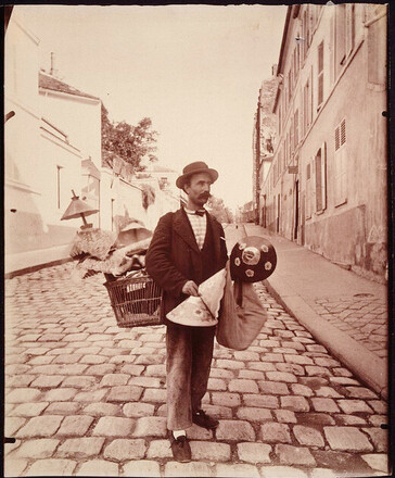 他在30年的摄影生涯里,基本只拍了一件东西:巴黎。世纪之交的巴黎,是一个变化非常迅速的地方。老的东西在迅速消失,新的东西在迅速生长。不过Atget对新东西可以说一点兴趣都没有。他关注的只是记录和保存老东西。于是他花了30年的时间来把即将消逝的老巴黎来记录下来。他开了个自己的小工作室,专门给当时的各种艺术家提供关于巴黎的记录,作为创作的参考。当时他的客户也有不少,甚至包括巴黎市政府,也雇佣他去记录即将消逝的一些街道和区域。但几乎没人注意过那些照片的艺术价值。
