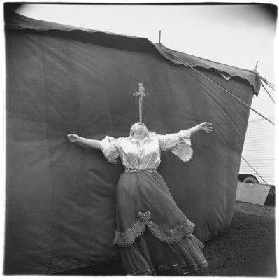 “阿布斯的照片的权威性源自它们那撕裂心灵的题材与它们那平静、干巴巴的专注之间的对比。专注的性质——摄影师的专注、被拍摄者对被拍摄的专注——创造了阿布斯那些毫不忌讳的、沉思的肖像的道德剧场。阿布斯绝非偷看怪异者和被社会遗弃者,在他们不知不觉时抓拍他们,而是去结识他们,使他们放心——以便他们尽可能平静和僵硬地摆姿势让她拍摄,如同维多利亚时代的名人坐在照相馆里摆姿势让朱莉娅·玛格丽特·卡梅伦拍摄他们的肖像。阿布斯的照片的神秘性,很大部分在于它们所暗示的被拍摄者在同意被拍摄之后有什么感觉。[…]