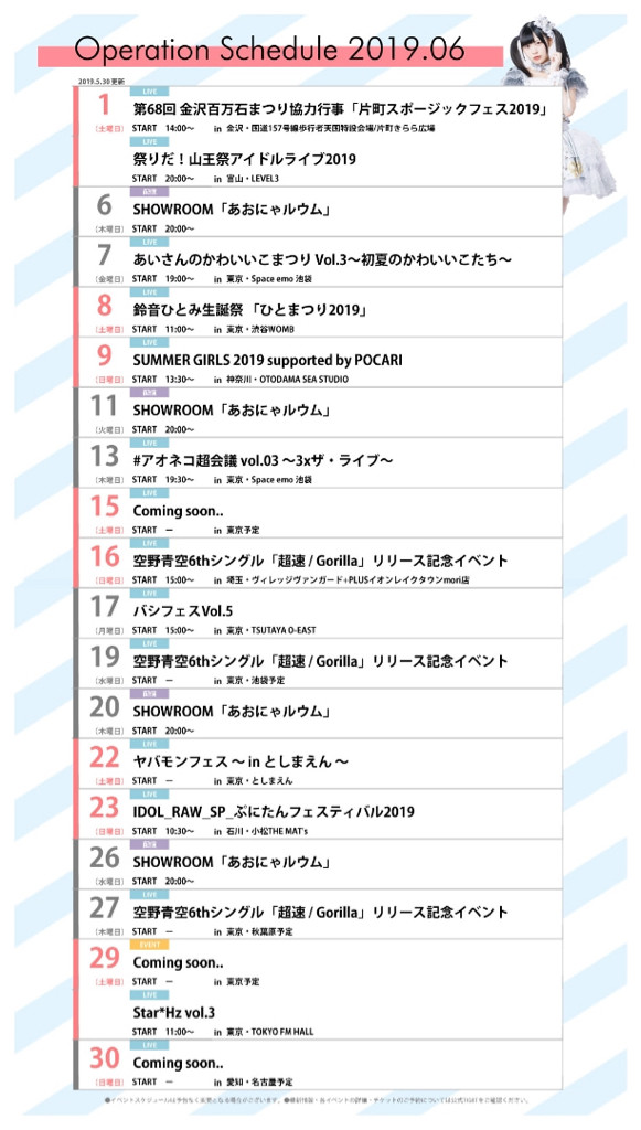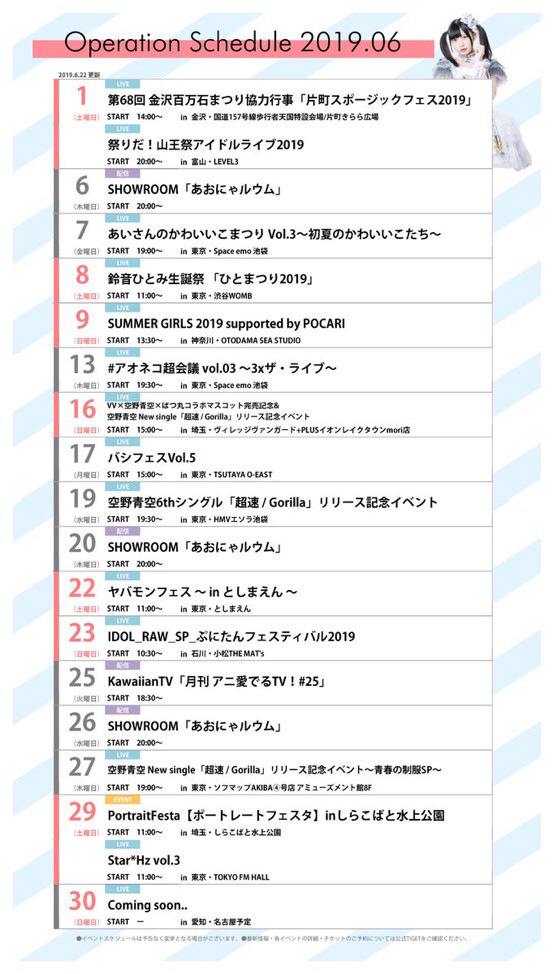 6) 30日は今のところ、名古屋でライブとのみ公表されております #出撃予告 #空野青空