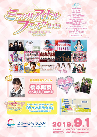 4) 1日日曜は魚津市のミラージュランド園内にて『ミラクルアイドルフェスタ』。無銭(有償席あり)の #撮可現場 となります( https://t.livepocket.jp/e/aonyan-20190901 ) #軍記 #空野青空