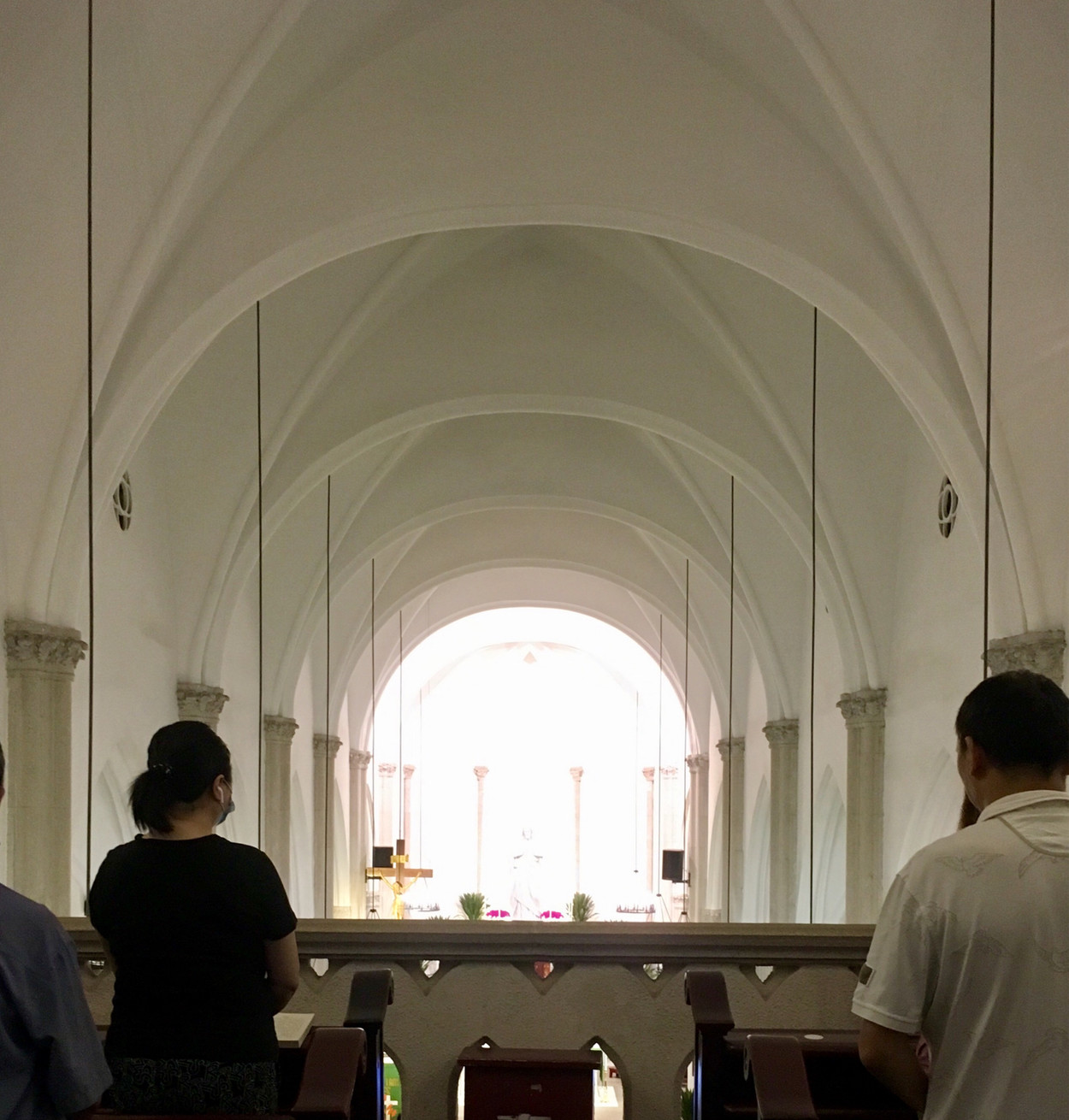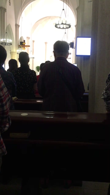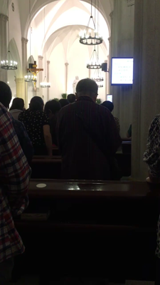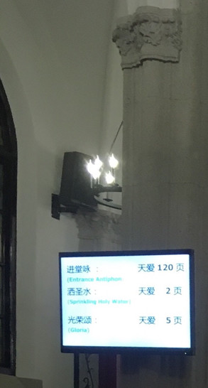 儘管不是信徒,我與伴侶仍做了彌撒。內有兩個大螢幕,在儀式時會播出聖經經文,給信徒跟著禱念。