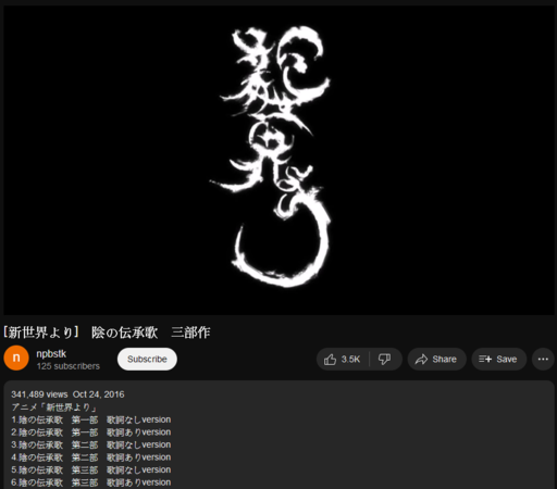 發現好久以前就有人剪《陰の伝承歌》六首合起來的版本... 歸納自己仍然喜歡這麼多年前的老歌的原因,似乎跟我喜歡梶浦由記的配樂的原因有點像(?)