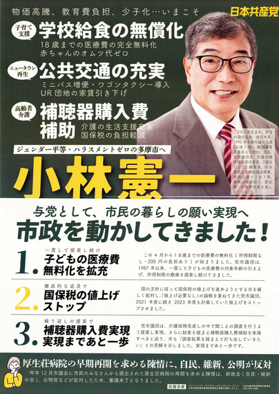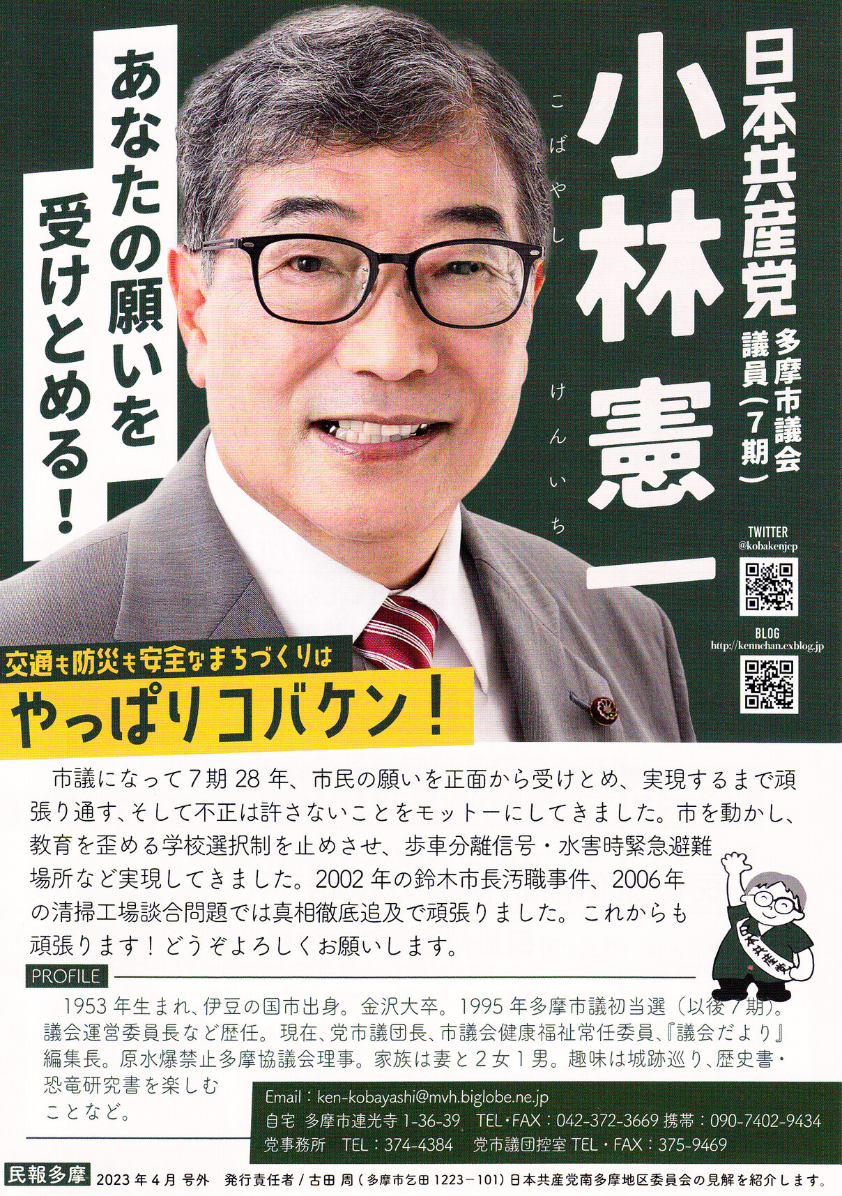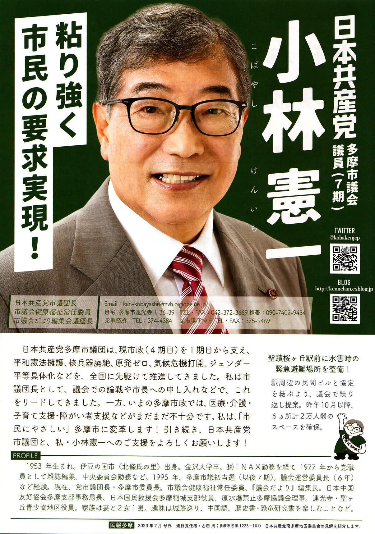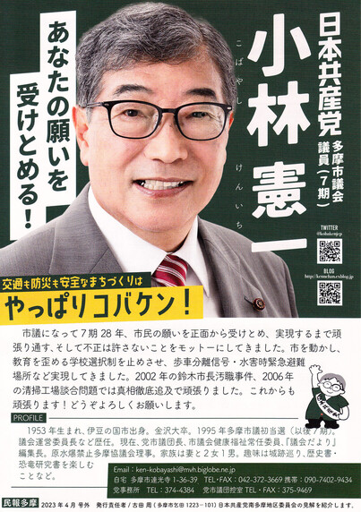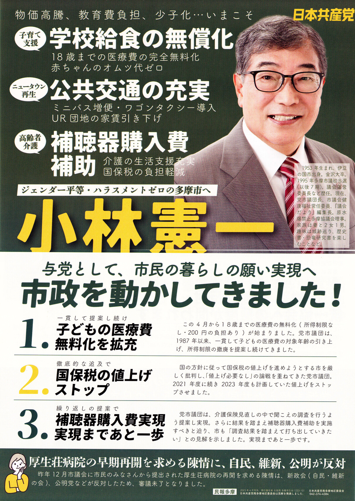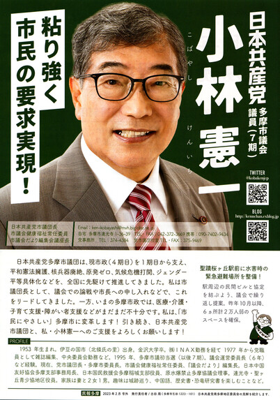 多摩市議会議員の小林憲一さん @kobakenjcp ポスター