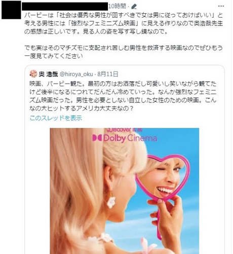 著名漫画家の奥浩哉氏による #映画バービー 感想吐露が話題になっているけど、個人的に感銘したのはこの投稿。