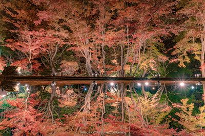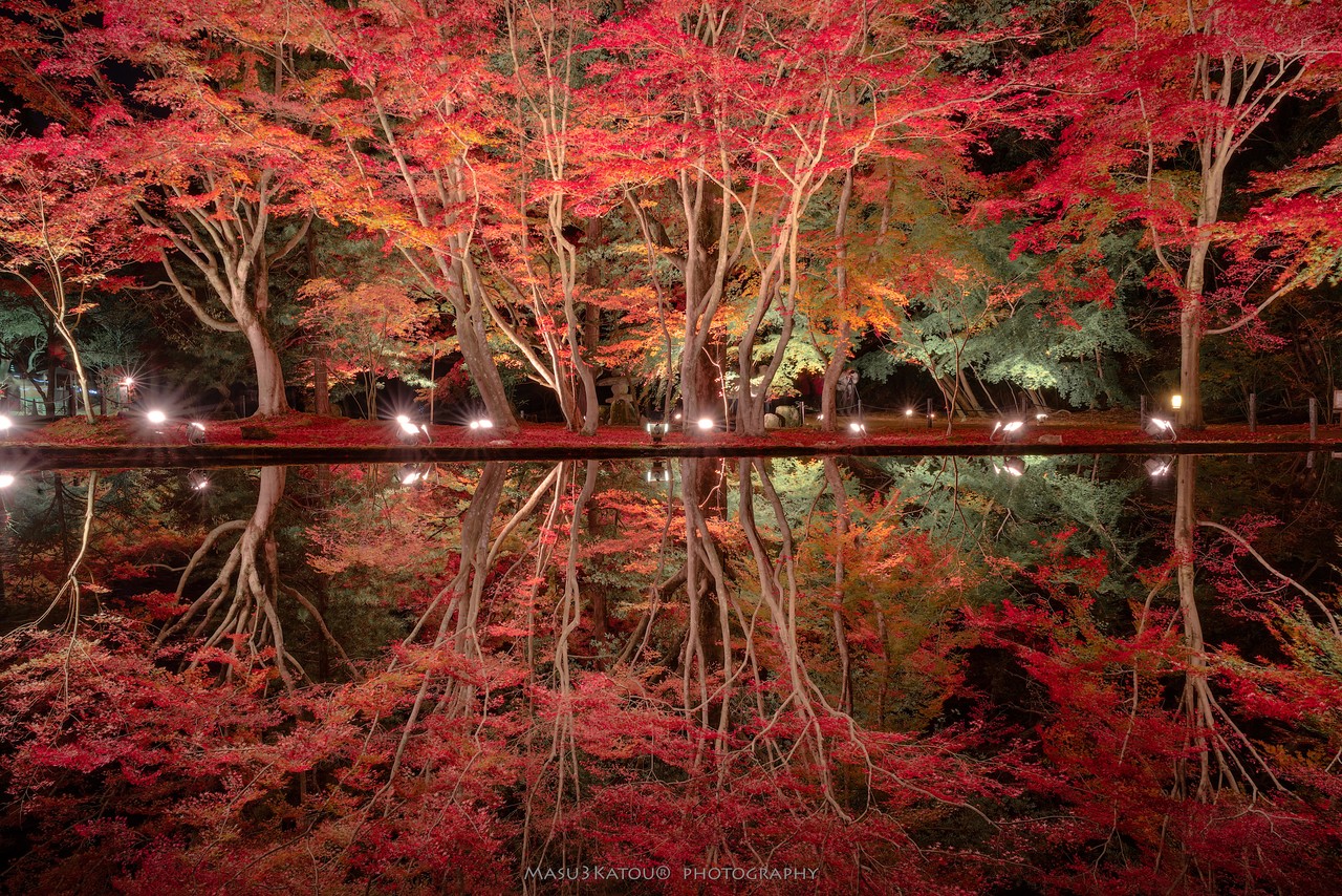 岐阜 曽木公園 もみじライトアップ 逆さもみじ