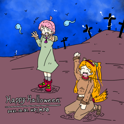 ハロウィンひなたま #イラスト #アイドルマスターミリオンライブ #木下ひなた #大神環