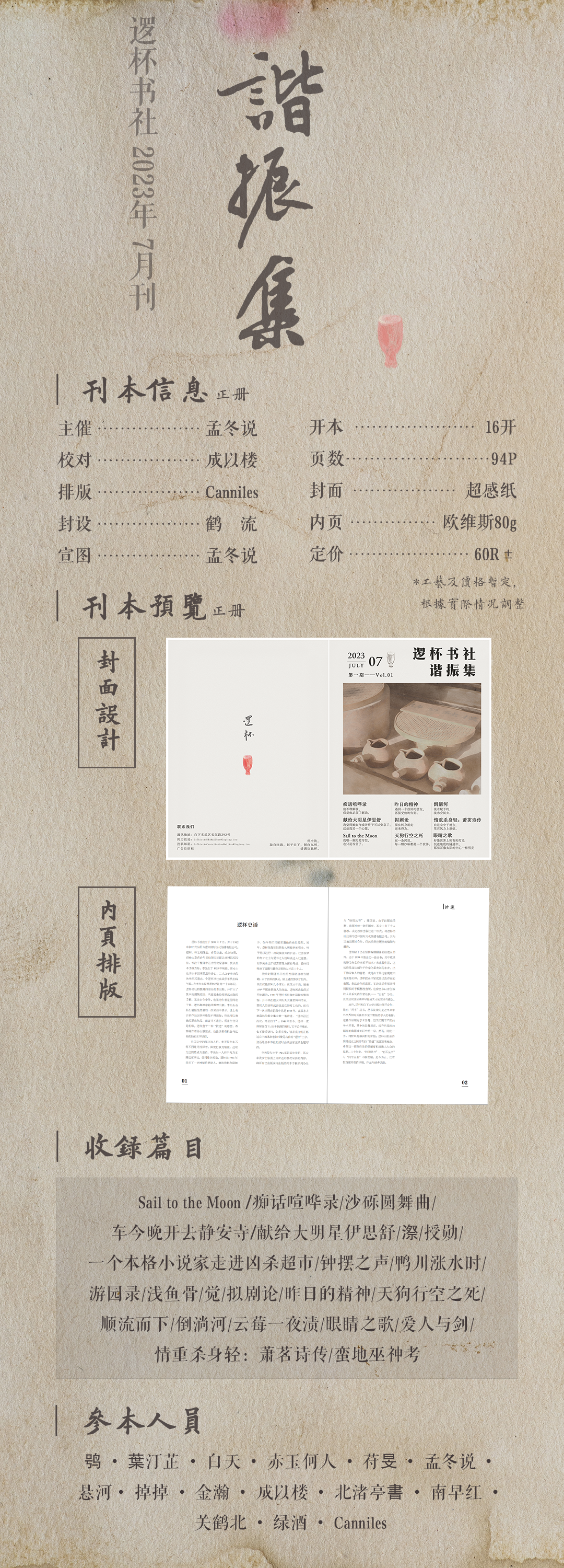 作者:鸮/葉汀芷/白天/赤玉何人/苻旻/孟冬说/悬河/掉掉/金瀚/成以楼/北渚亭書/南早红/关鹤北/绿酒/Canniles