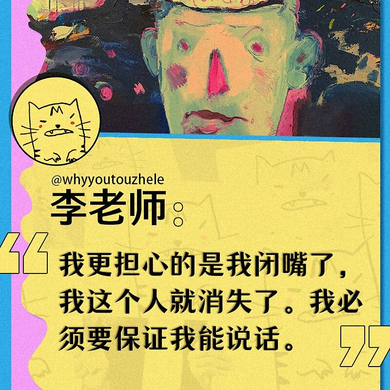 推特用户 #李老师不是你老师 @whyyoutouzhele 因频繁大量发布 #白纸运动 信息而被主流媒体广泛引用,现已有82万粉丝。 他在中国的父母被警察多次骚扰。李老师接受外媒采访说:“我只要一发推特,他们就会给我家打电话,然后警察就会过来。” 谁无软肋?李老师该不该暂停发推?该怎样保护自己和家人? https://nitter.hongkongers.net/RFA_Chinese/status/1599931630948298753#m