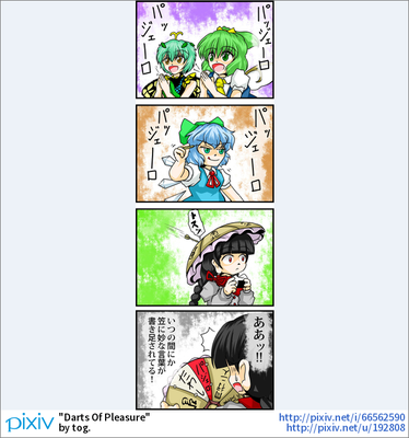Darts Of Pleasure | tog. #pixiv #東方4コマ #矢田寺成美 https://www.pixiv.net/member_illust.php?mode=medium&illust_id=66562590