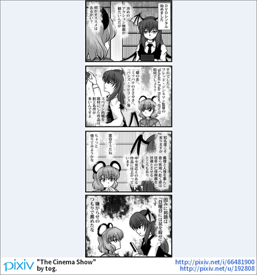 The Cinema Show | tog. #pixiv #東方4コマ #ナズーリン #小悪魔 https://www.pixiv.net/member_illust.php?mode=medium&illust_id=66481900
