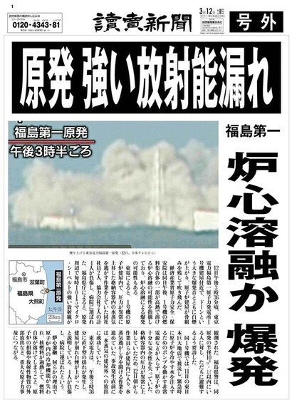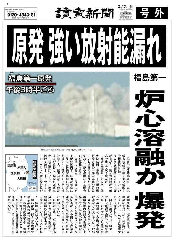 福島第一原発2号機で燃料損傷が始まる。溶けた燃料の大部分が圧力容器の底に落下。この頃、福島第一原発のモニタリングポストで放射線量の中程度の上昇を観測。