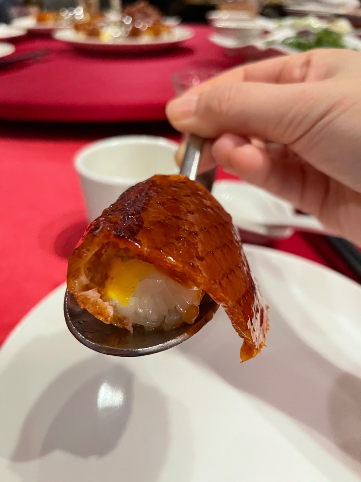 以前看照片,以為鴨皮是廣式那種薄薄脆皮的,