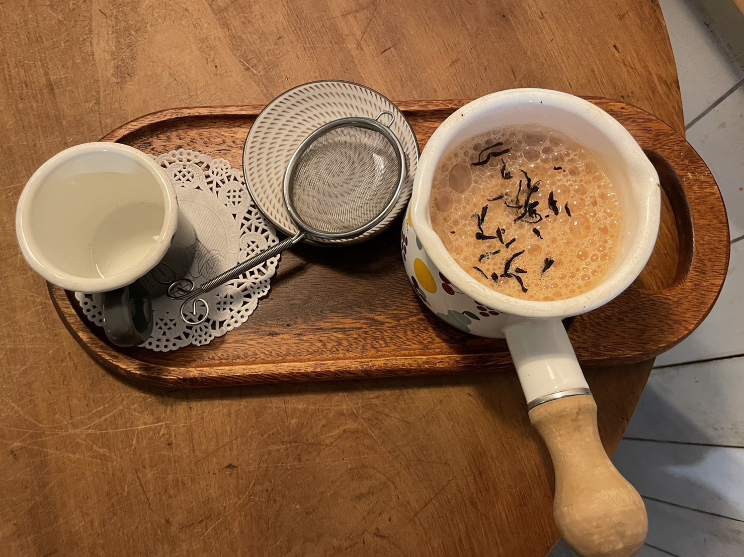 朋友指著鍋煮奶茶,吶吶地問: