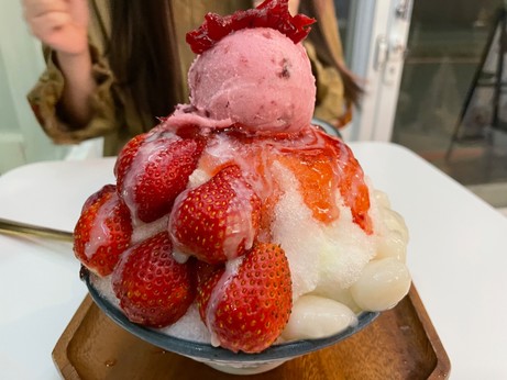 這家冰非常細膩,不像是刨冰那種粗大顆粒,而是像雪花冰一樣,並帶著奶香。