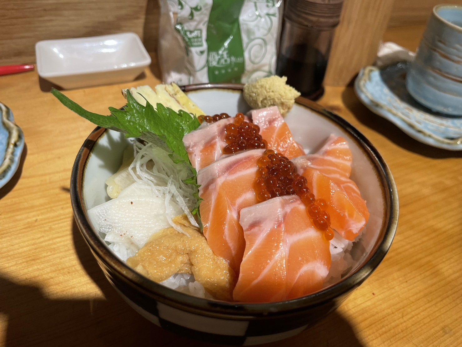 :ablobcaramelldansen: 菜單上的「台灣丼$480元」,標榜使用台灣在地的漁獲和食材,當天詢問服務生,說石材有九孔牡蠣還有一堆什麼的(啊我有聽沒記得XD),感覺也很讚,列入我的下次清單。