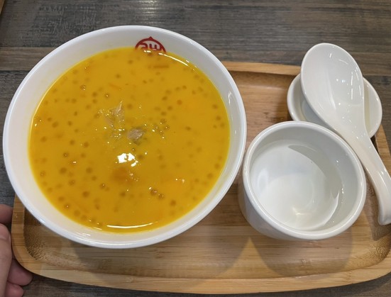 還有一小碗熱湯與優格。