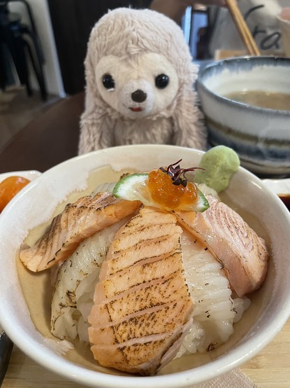 🦥炙鮭魚比目魚鰭邊丼 $480元