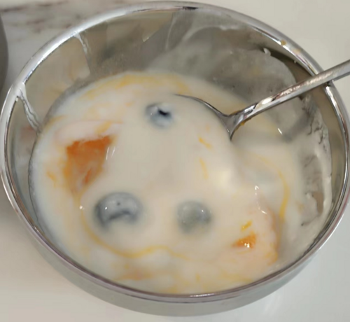 #每日 吃着自己用酸奶机和发酵菌做的自制酸奶,加点水果,感觉还挺好的。昨晚12点开始发酵,9点拿出来的时候还有点酸,放冷藏室到现在,已经完全不酸了。(当然也不甜就是了。)😀