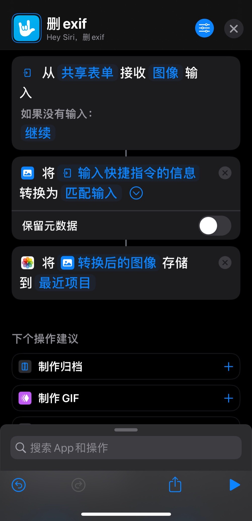 用ios的朋友可以给自己写个简单快捷指令来删除exif(照片信息:位置、镜头等)!
