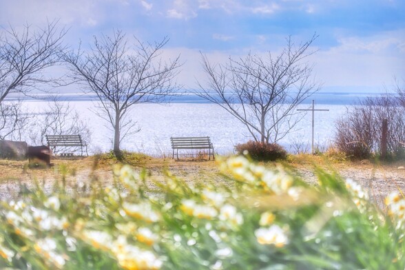 #tokyocameraclub #東京カメラ部 #水仙 #ベンチ #海の見える風景