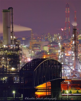 「Night view of truss bridge」 location: 岡山県倉敷市 / 水島臨海工業地帯