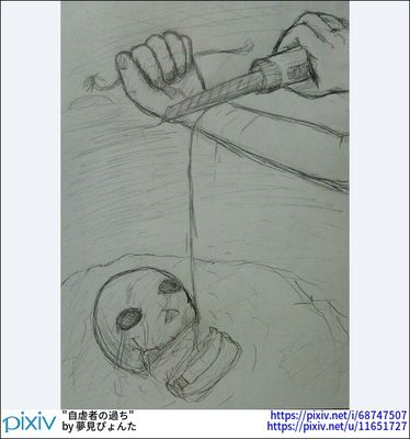 pixivに投稿しました 自虐者の過ち #pixiv #ぴょんた氏クオリティ #オリジナル #創作 #アナログ #流血表現 https://www.pixiv.net/member_illust.php?mode=medium&illust_id=68747507なんでこんなにシリアスなの、描きたくなるんですかねぇ(他人事)