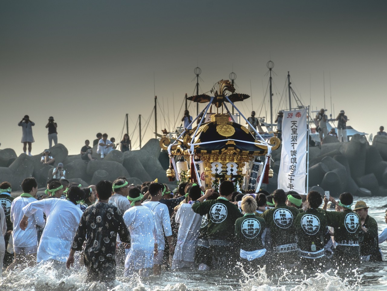 茅ヶ崎の夏の風物詩 #浜降祭 。波間に響き渡る威勢の良い掛け声。https://mstdn.jp/media/unWMDgZlMJVclelS8zU