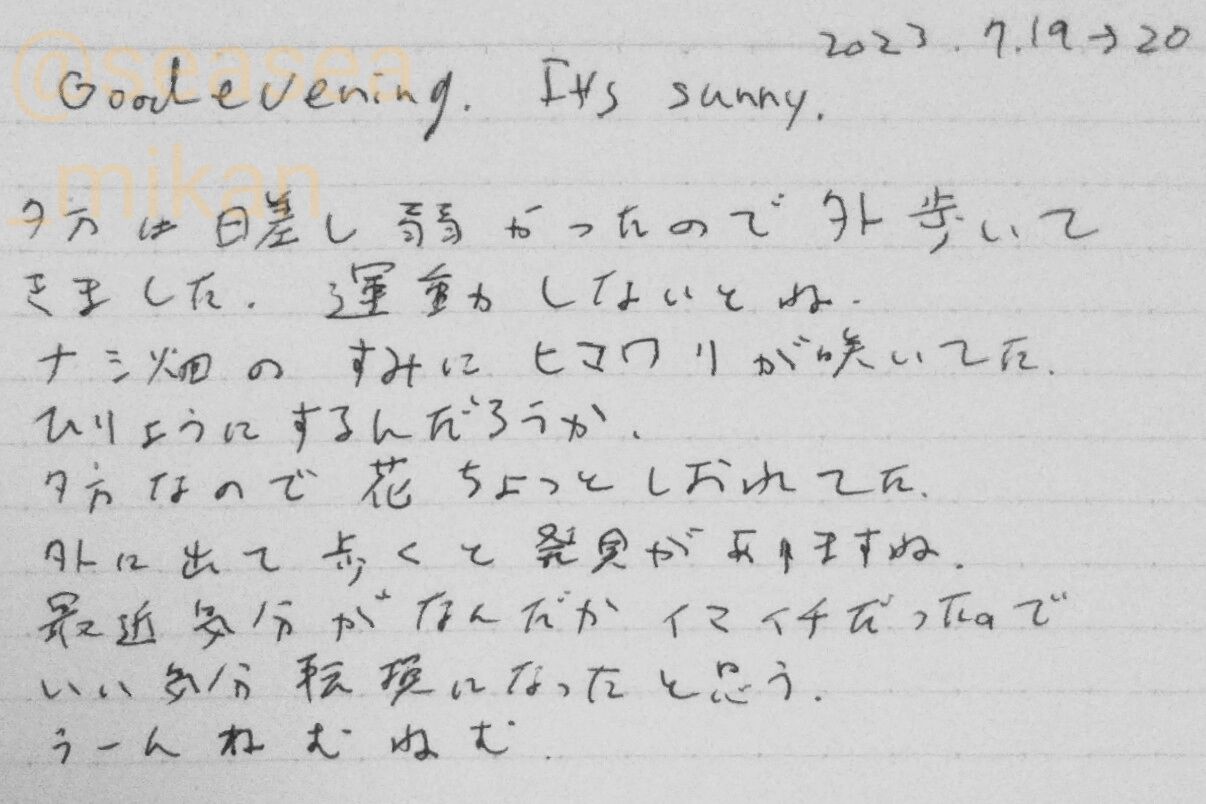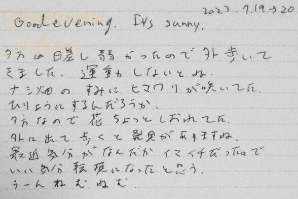 #海の手書き日記 歩いてきましたひまわり咲いてた