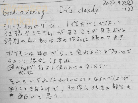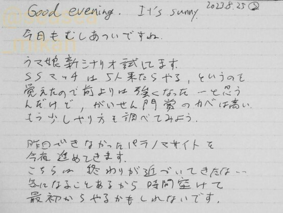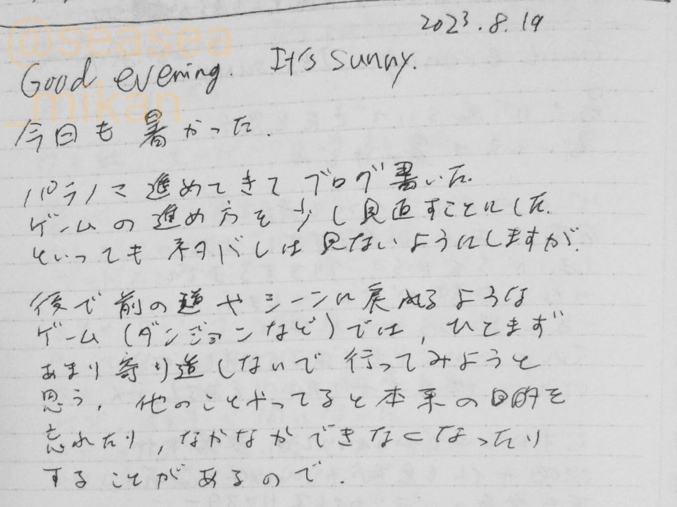 #海の手書き日記 私なりのゲームのやり方を考えてました。しばらくは、時間かけすぎない程度に寄り道して、まっすぐ進んでみようと思う。育成に時間かけすぎて本編進まないことがありすぎてな…