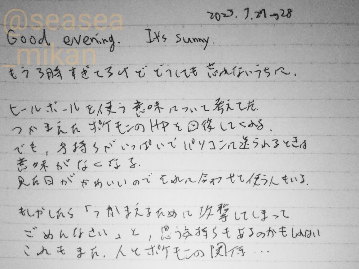 #海の手書き日記 #ポケモン ヒールボールはなぜ生まれたのかも考えた…いや、リアルだけなくてゲーム内の世界でも…寝ます