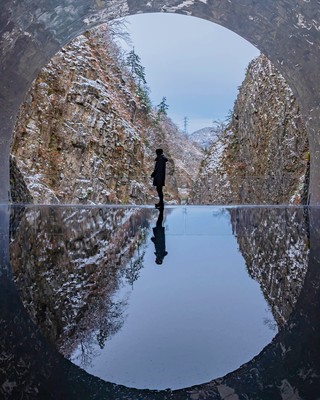 清津峡は近年SNS投稿で人気となっている場所ですが、冬に訪れる人は少ないようです。 モノトーンの景色には独特の美しさがあり、混雑もないことからおすすめです。 #清津峡 #kiyotsukyo #冬景色 #雪景色 #清津峡渓谷トンネル #清津峡渓谷
